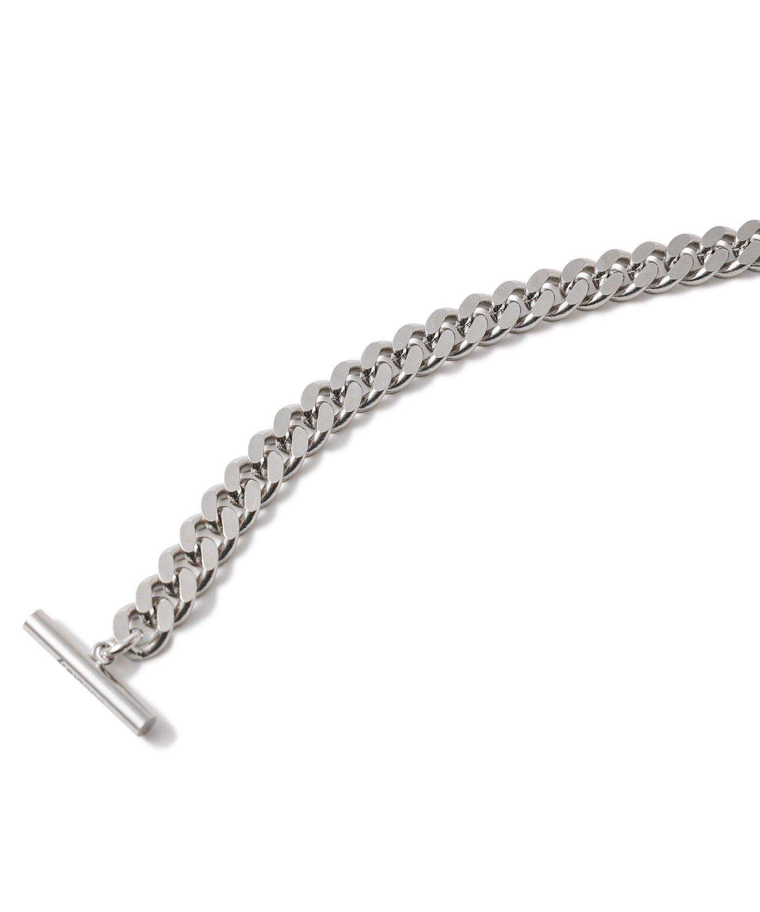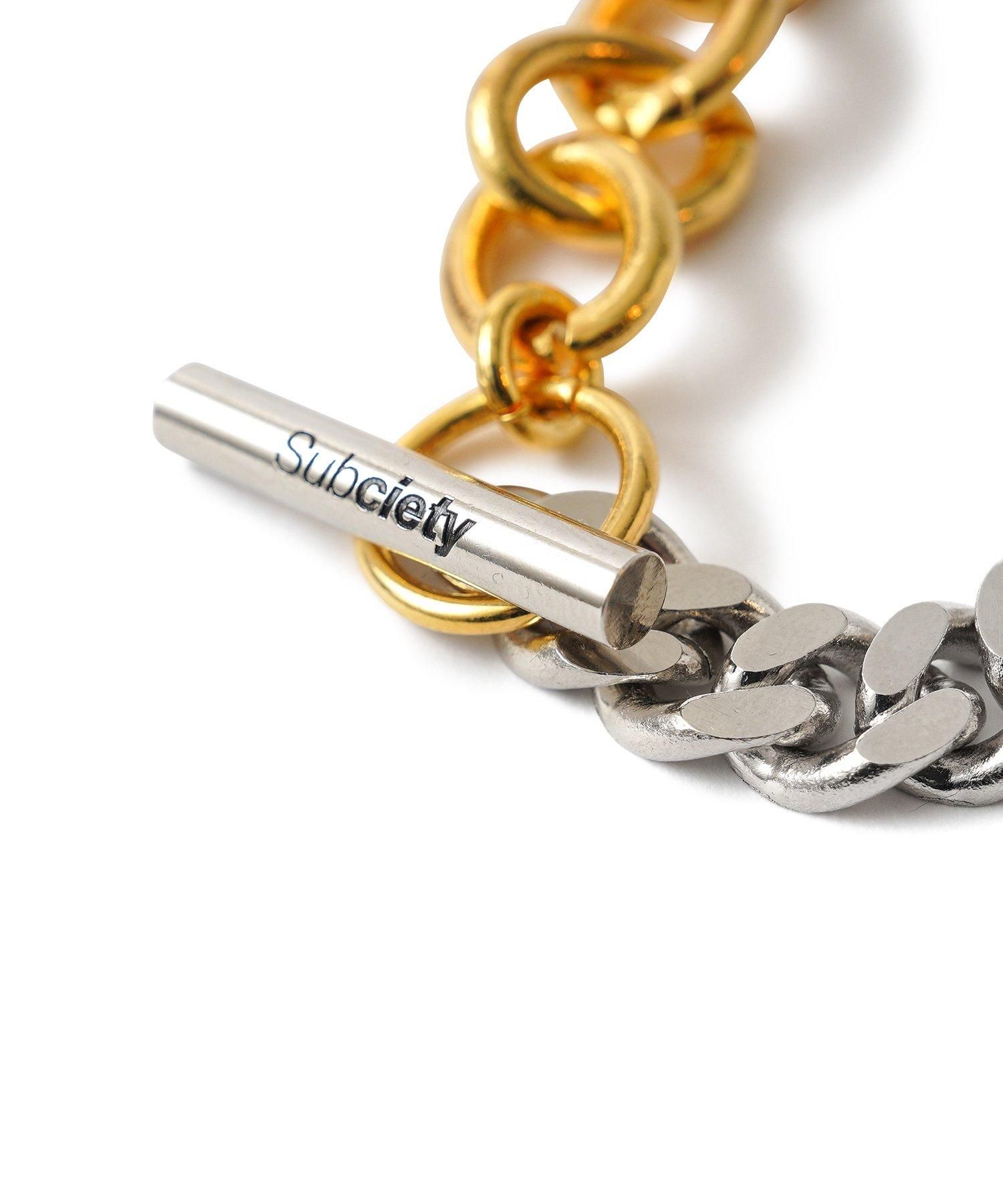 太めのチェーンを採用したショートタイプのネックレス。シルバーの喜平チェーンとゴールドのあずきチェーンのコンビネーションが魅力のアイテム。マンテル部分にはブランドロゴを刻印。ギフトにも最適。