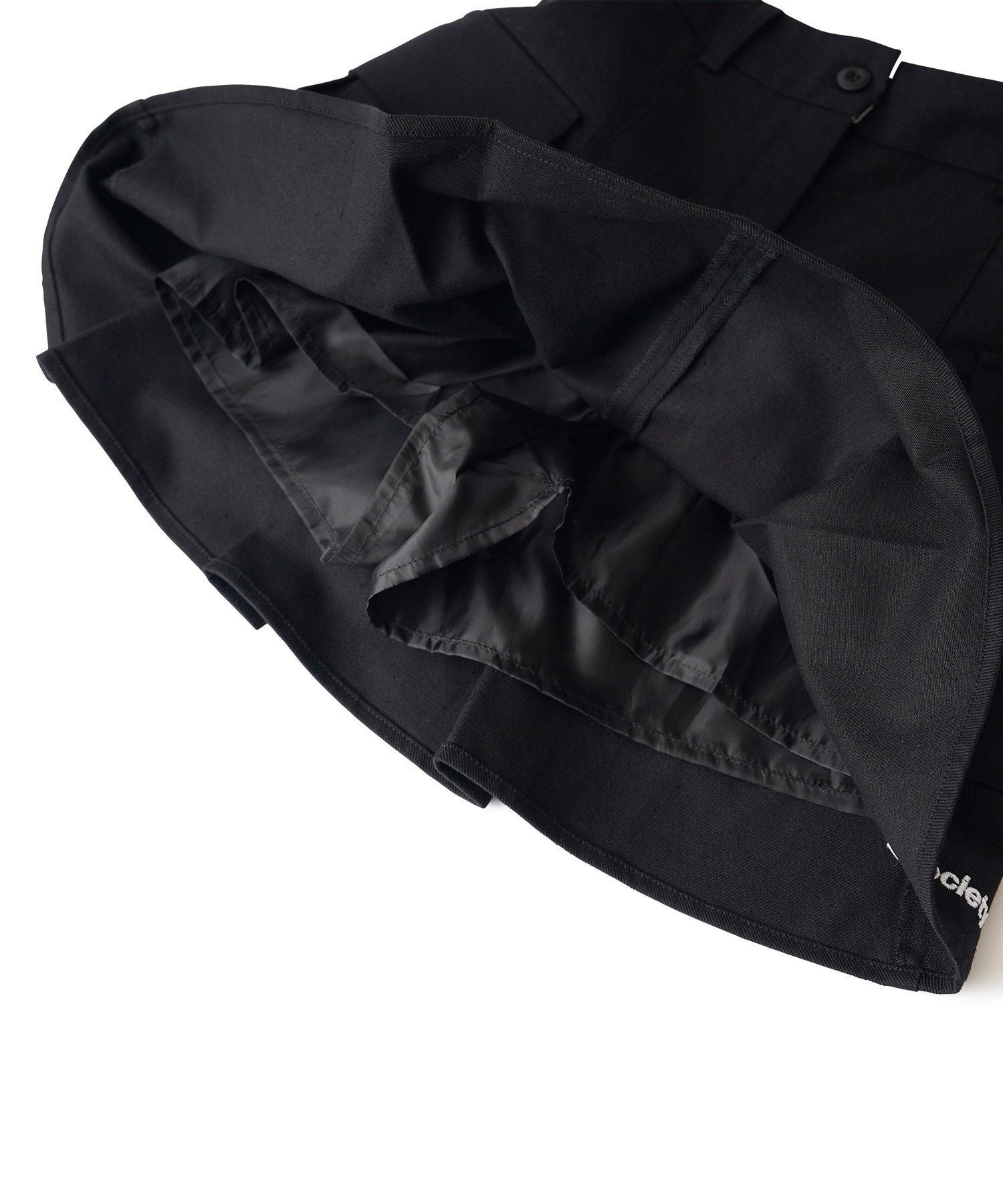 ベルト裏は白地にブランドロゴをプリントし、ワーク感もミックスされた隙の無い仕上がり。ウエストはゴム仕様になっており、ストレスフリーに着用可能。ペチコート付きで安心して着用可能。