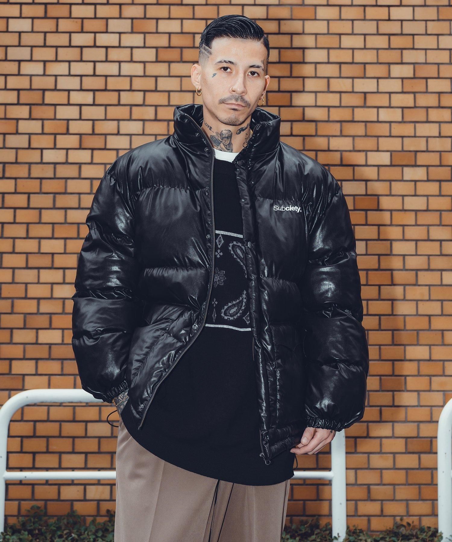 表地には柔らかく、リアルレザーのようなシボを施した合成皮革を採用。裏地には滑らかで着脱が快適なポリエステルを採用し、ブランドを象徴するバンダナ柄をプリント。襟までしっかりと配備されたボリュームのある中綿は防寒性、保温性抜群。