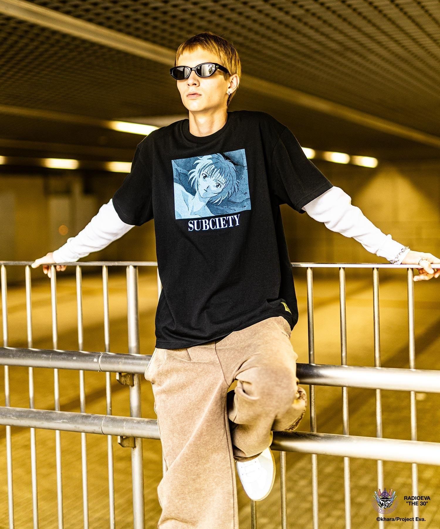 第伍話「レイ、心の向こうに」のワンシーンを網点のシルクスクリーンプリントで表現したS/S TEE。4:3のアスペクト比をそのままに、下部にはブランドロゴをオン。バックプリントはアイキャッチのグラフィックをブランドを象徴するバンダナ柄で落とし込みました。