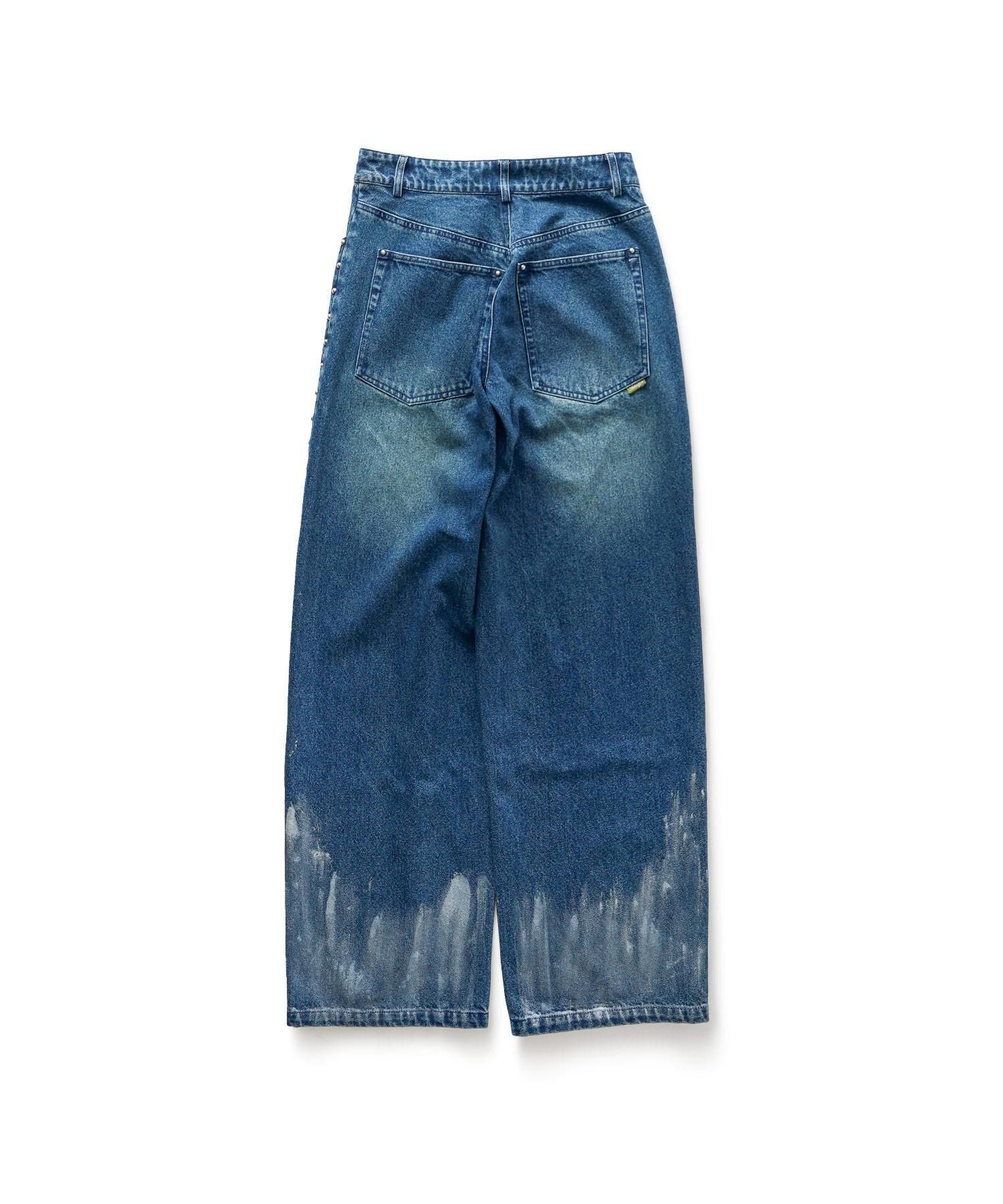 スタッズを打ち込みウエスタンやインダストリアルの雰囲気を漂わせるデニムパンツ。ヒップや腿回りにゆとりを持たせ、股下から裾先に向かって細くなるルーズテーパードに設計し、リラックス感がありつつもすっきりとした印象のシルエットに仕上げました。