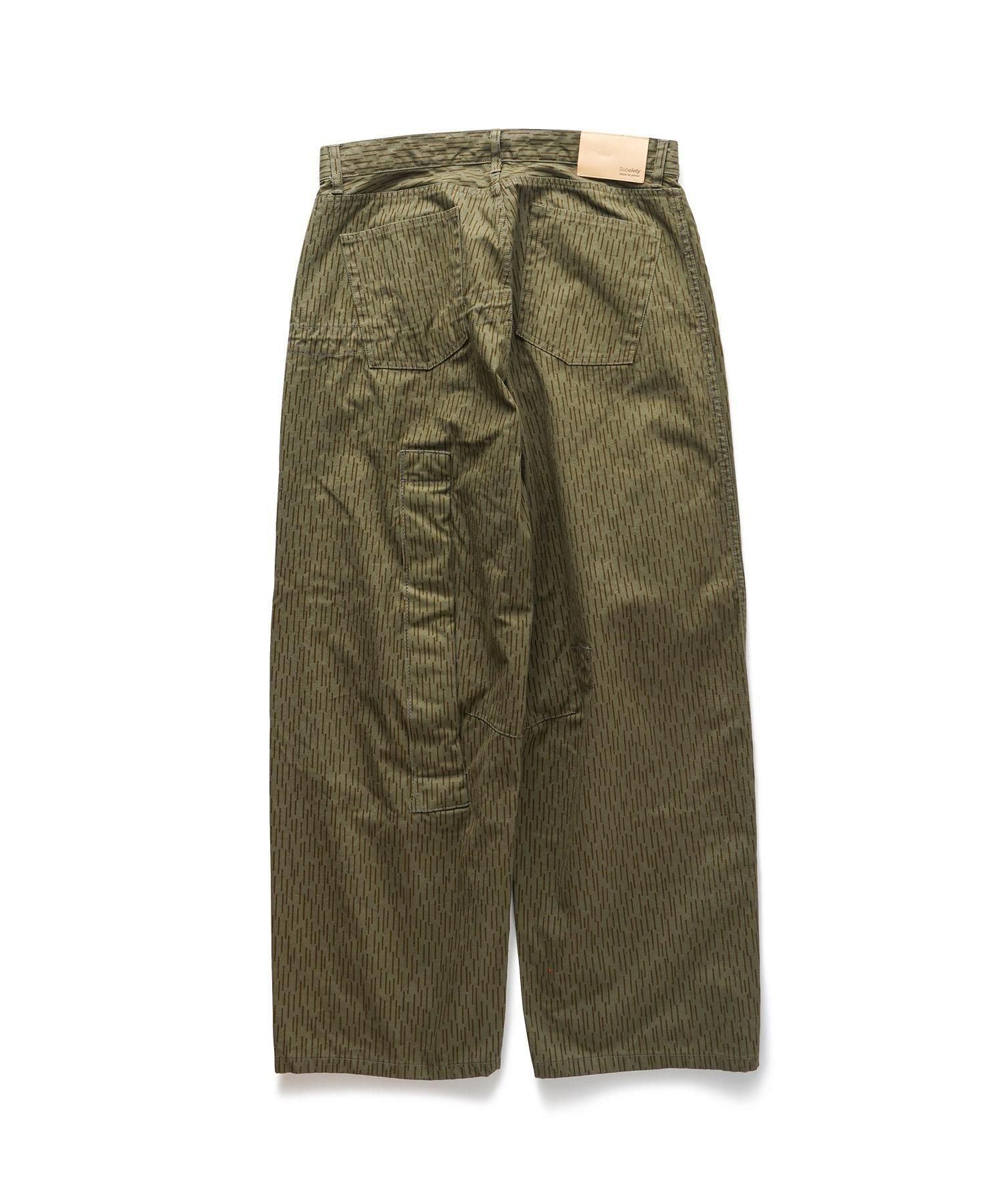 東ドイツ軍にて採用されていたデッドストックのテント生地を解体、再構築した5ポケットのミリタリーパンツ。針葉樹に溶け込むように開発されたレインドロップカモは柄物ながら落ち着いた雰囲気のあるパターンです。
