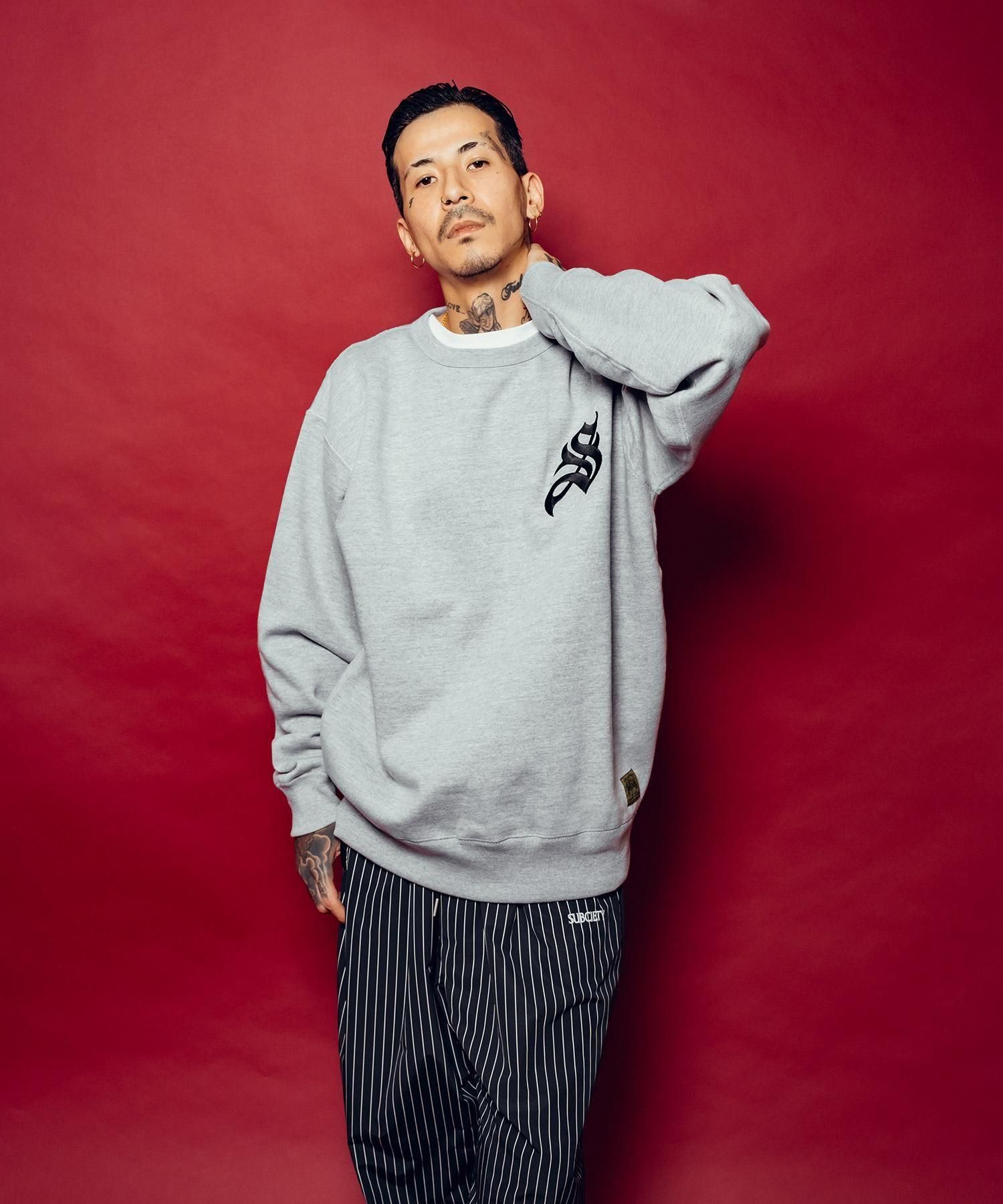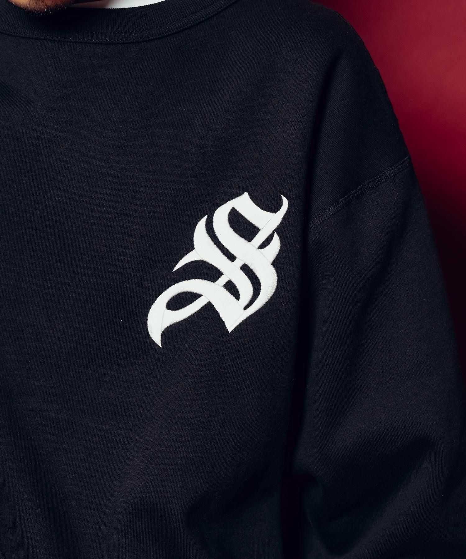 12.4オンスの裏起毛天竺を採用したスウェットシャツ。左胸にはブランドイニシャルである『S』のオールドイングリッシュロゴを刺繍で施しました。左裾にはシグネイチャーカラーの裾タグを配備。シンプルでコーディネートを選ばないアイテム。